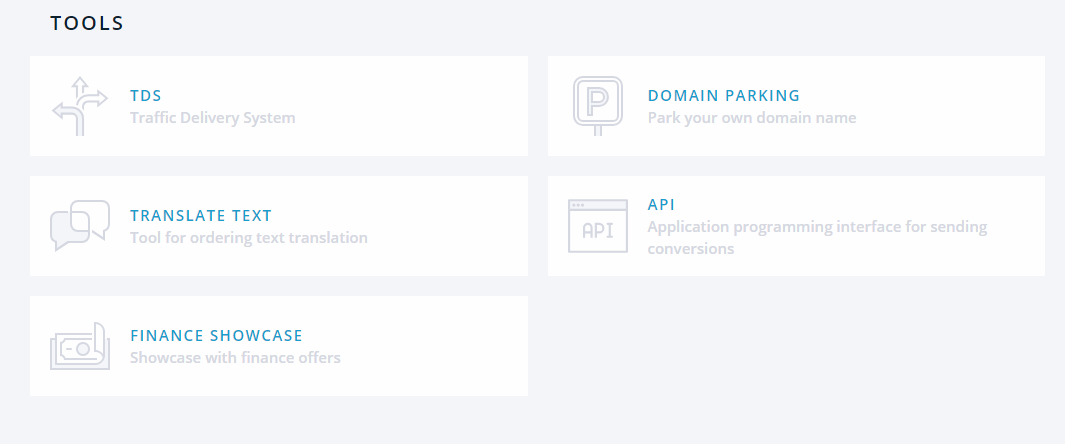 - TDS, Banner rotator, Global PostBack, API and other useful tools to help you succeed